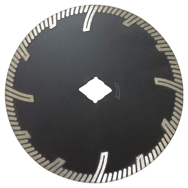 Hiqua hot press GU-type turbo blade for cutting of granite,marble,masonry and concrete materials.Hot press blades are much better in cutting performance. They can cut much more fast and have much more longer in cutting life than cold press blades. Of course, the price is also much higner. They can cut on very hard stones, like hard granite, sandstone, reinforced concrete and etc. Normally the biggest diameter size for hot press blade is 14″ (350mm) only.If you need bigger size, you should chose silver welded blades or laser welded blades.