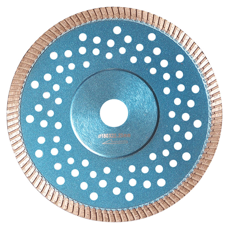 Hiqua hot press thin turbo blade for ceramic tile,marble,concrete and granite,it’s extremely sharp and no chipping.Hot press blades are much better in cutting performance. They can cut much more fast and have much more longer in cutting life than cold press blades. Of course, the price is also much higner. They can cut on very hard stones, like hard granite, sandstone, reinforced concrete and etc. Normally the biggest diameter size for hot press blade is 14″ (350mm) only.If you need bigger size, you should chose silver welded blades or laser welded blades.