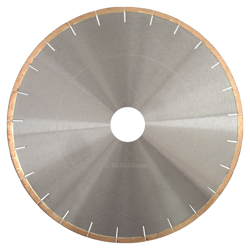 Welded blades cutting performance is much more better than hot press blades. Both in cutting life and speed. Besides, the diameter can be very big and the segment thickness can be much more thicker than hot press blades or cold press blades. Size from 12″ (300mm) to 80″ (2000mm). Welded blades are more used in bridge saw,Mountain cutter. And mostly to cut big stone blocks.