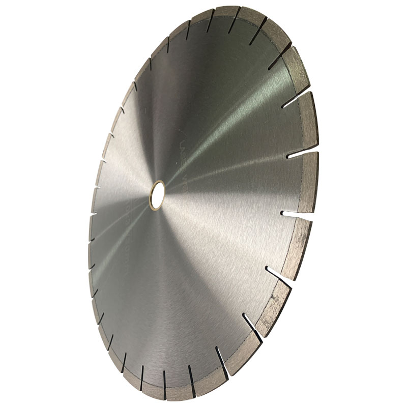 Welded blades cutting performance is much more better than hot press blades. Both in cutting life and speed. Besides, the diameter can be very big and the segment thickness can be much more thicker than hot press blades or cold press blades. Size from 12″ (300mm) to 80″ (2000mm). Welded blades are more used in bridge saw,Mountain cutter. And mostly to cut big stone blocks.