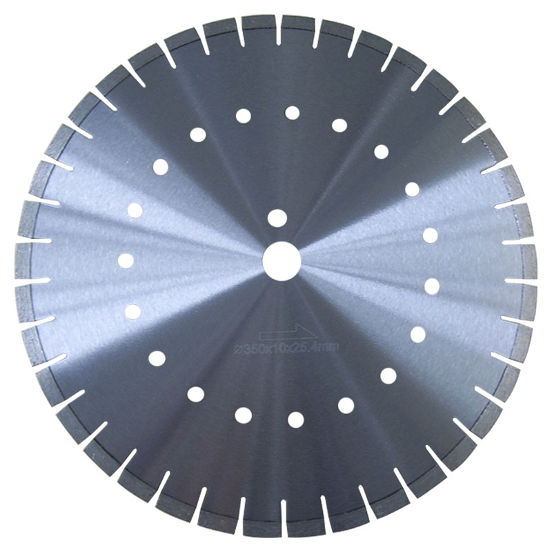 Welded blades cutting performance is much more better than hot press blades. Both in cutting life and speed. Besides, the diameter can be very big and the segment thickness can be much more thicker than hot press blades or cold press blades. Size from 12″ (300mm) to 80″ (2000mm). Welded blades are more used in bridge saw,Mountain cutter. And mostly to cut big stone blocks.
