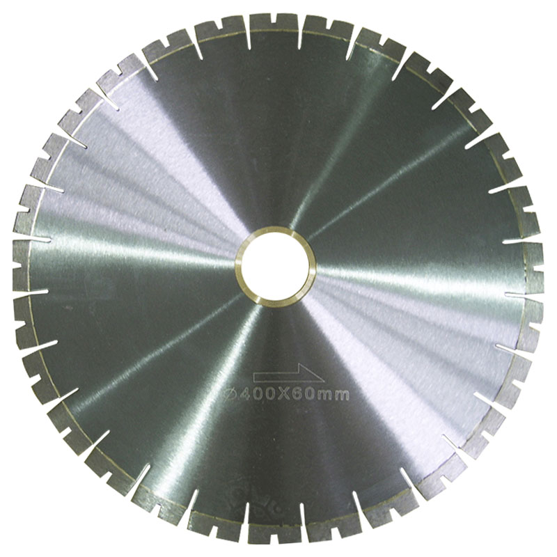 Welded blades cutting performance is much more better than hot press blades. Both in cutting life and speed. Besides, the diameter can be very big and the segment thickness can be much more thicker than hot press blades or cold press blades. Size from 12″ (300mm) to 80″ (2000mm). Welded blades are more used in bridge saw,Mountain cutter. And mostly to cut big stone blocks.
