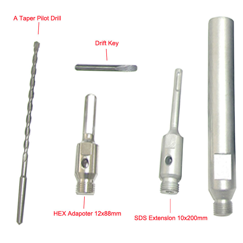 We can provide:drift key,a taper pilot drill,SDS adaptor,SDS extension,HEX adaptor,HEX extension,and so on.